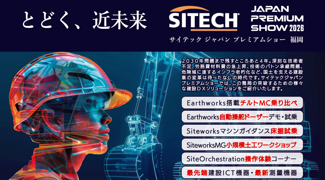 平素より弊社のソリューションをご愛顧いただき誠にありがとうございます。21世紀も四半世紀が経過し、建設現場のデジタル化・建機のICT化など建設DXのスピードはますます加速しています。2024年よりサイテックジャパンでは、建設の近未来へ向けて、「とどく、近未来」をテーマに、最新のマシンコントロール、マシンガイダンス、ICT測量技術を体感・試乗していただけるイベント『サイテックジャパン プレミアムショー」を開催しています。そして本年2025年10月には、京都府京丹波町にて『サイテックジャパンプレミアムショーin京丹波』を開催させていただく運びとなりました。皆様におかれましては、大変お忙しい中とは存じますが、是非とも本イベントへご参加いただき最新の建設ICTテクノロジーをご体感・ご試乗賜りたくご案内申し上げます。